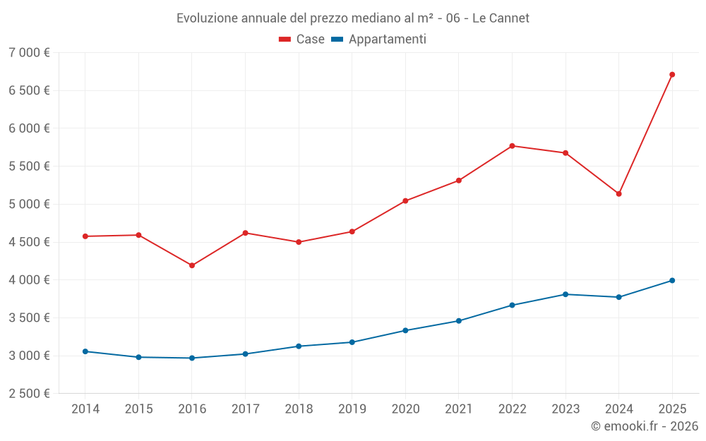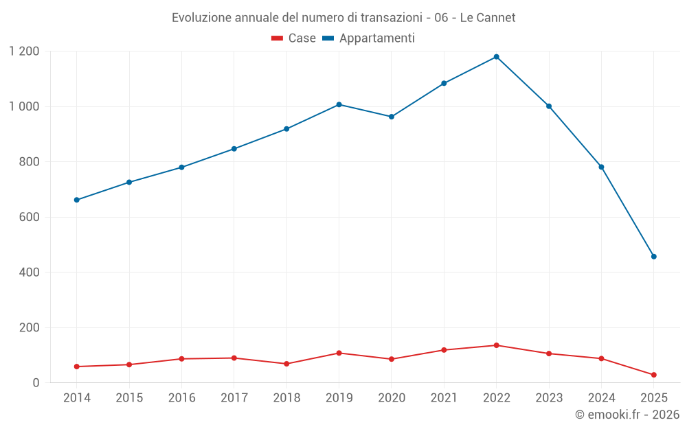 Il prezzo mediano sulle 29 transazioni di case degli ultimi 6 mesi nel comune di Le Cannet era di 6 711 € al metro quadrato per un valore patrimoniale mediano di 631 840 €. In questo periodo il 60% delle transazioni era tra 5 147 e 9 575 € al metro quadrato (dal 2° all'8° decile).