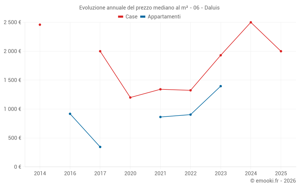 Mappa dei prezzi della casa nel comune di Daluis, scegli una sezione per vedere le transazioni per parcella.