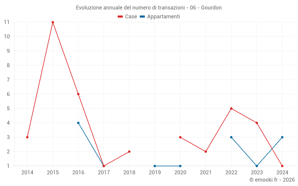 Attenzione, ultimo anno incompleto. Le proiezioni sono effettuate in base alle proporzioni tra semestri dell'anno precedente a livello dipartimentale/nazionale e per tipo di proprietà .