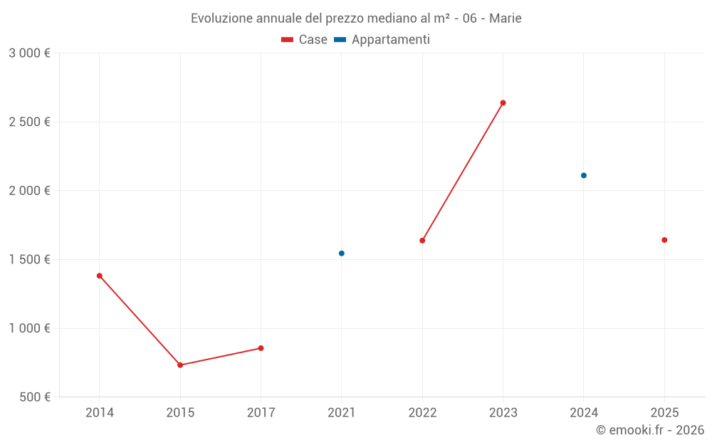 Evoluzione del prezzo mediano al m² degli appartamenti
