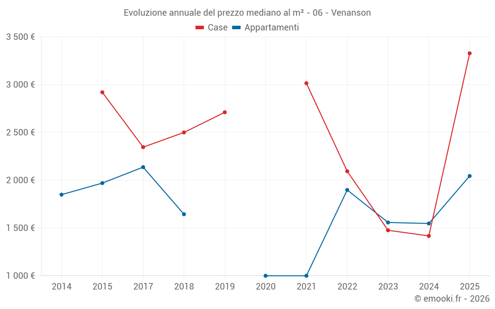Evoluzione del prezzo mediano al m² degli appartamenti