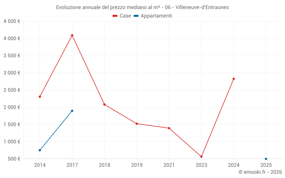 Mappa dei prezzi della casa nel comune di Villeneuve-d'Entraunes, scegli una sezione per vedere le transazioni per parcella.