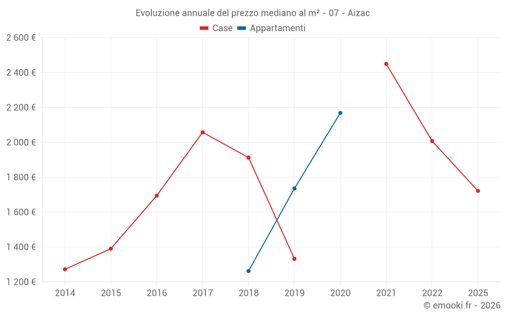 Evoluzione del prezzo mediano al m² degli appartamenti