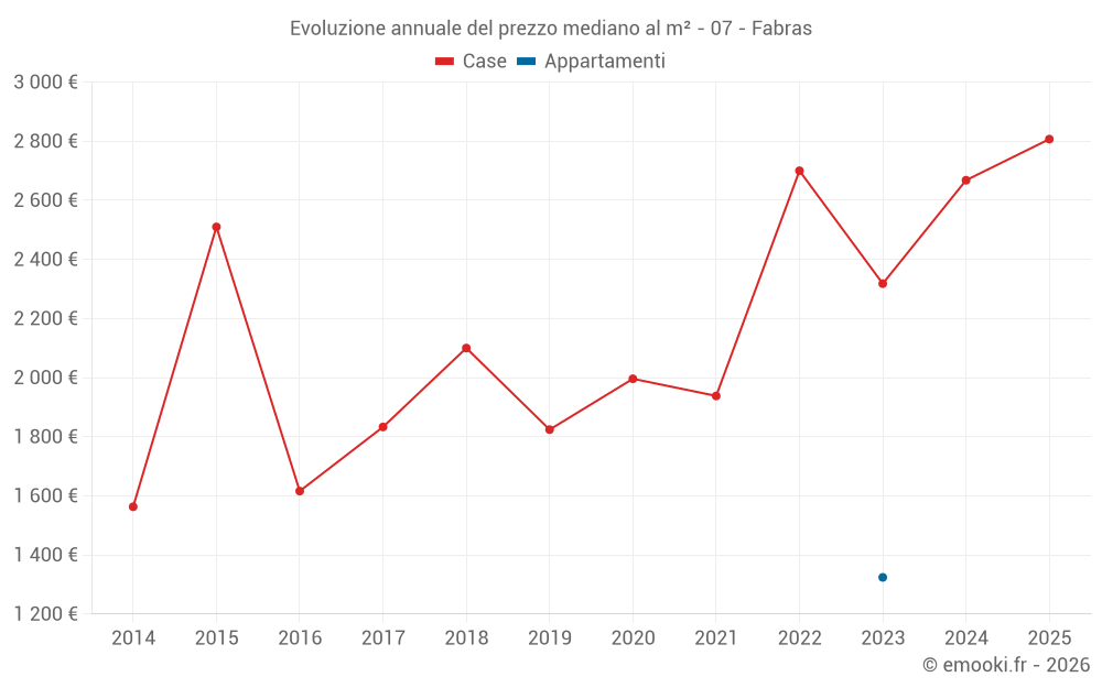 Evoluzione del prezzo mediano al m² degli appartamenti