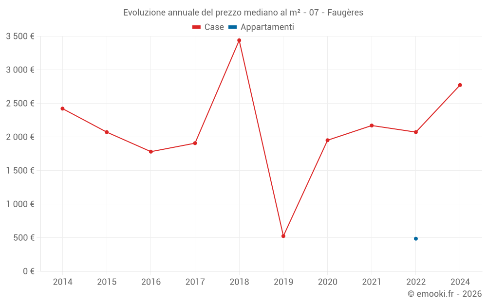 Evoluzione del prezzo mediano al m² degli appartamenti