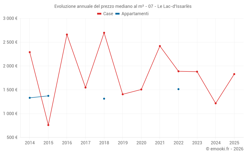 Evoluzione del prezzo mediano al m² degli appartamenti
