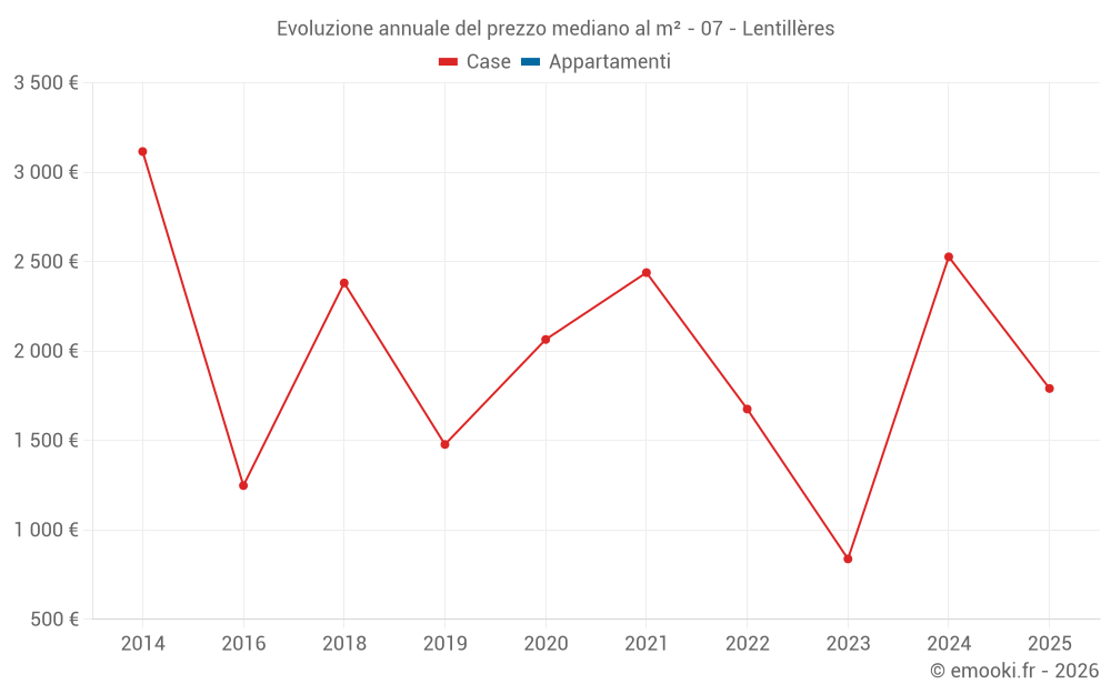 Evoluzione del prezzo mediano al m² degli appartamenti