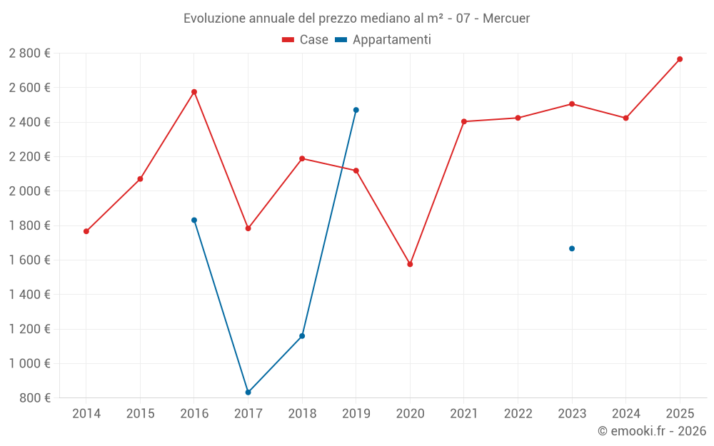 Qual è il prezzo al m2 delle case in Mercuer?