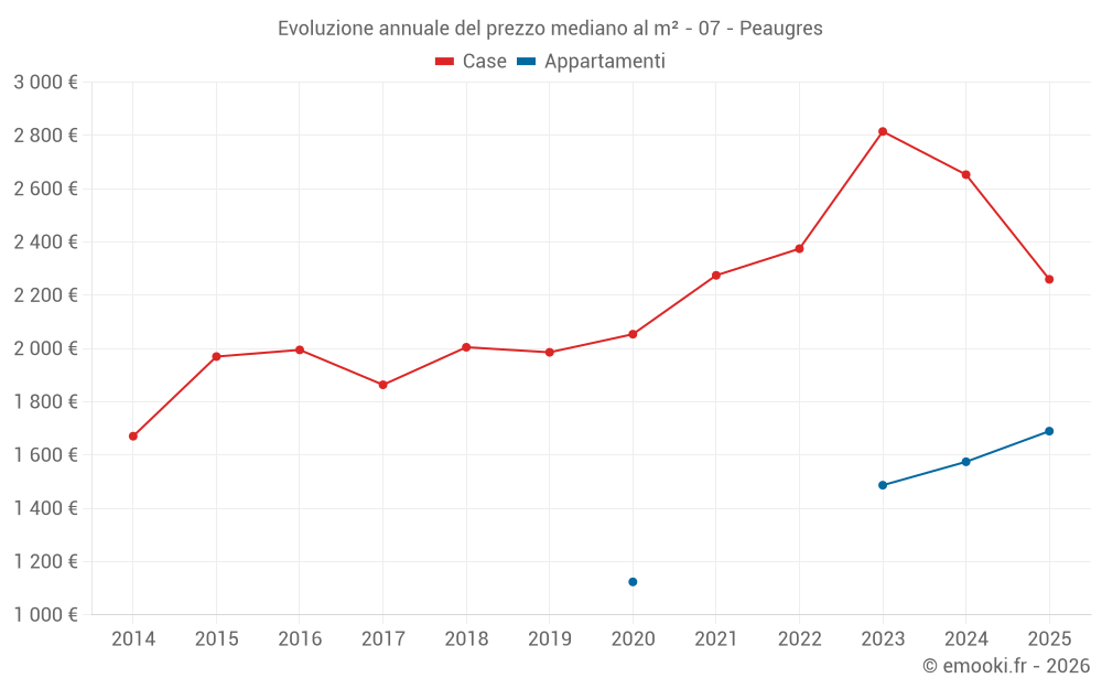 Qual è il prezzo al m2 delle case in Peaugres?