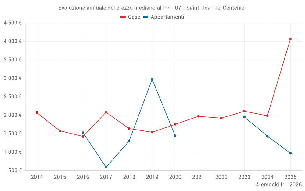 Evoluzione del prezzo mediano al m² degli appartamenti