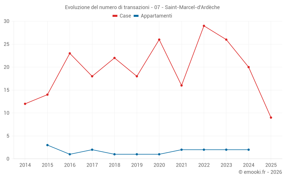 Il prezzo mediano sulle 20 transazioni di case degli ultimi 12 mesi nel comune di Saint-Marcel-d'Ardèche era di 2 458 € al metro quadrato per un valore patrimoniale mediano di 240 500 €. In questo periodo il 60% delle transazioni era tra 1 549 e 2 940 € al metro quadrato (dal 2° all'8° decile).