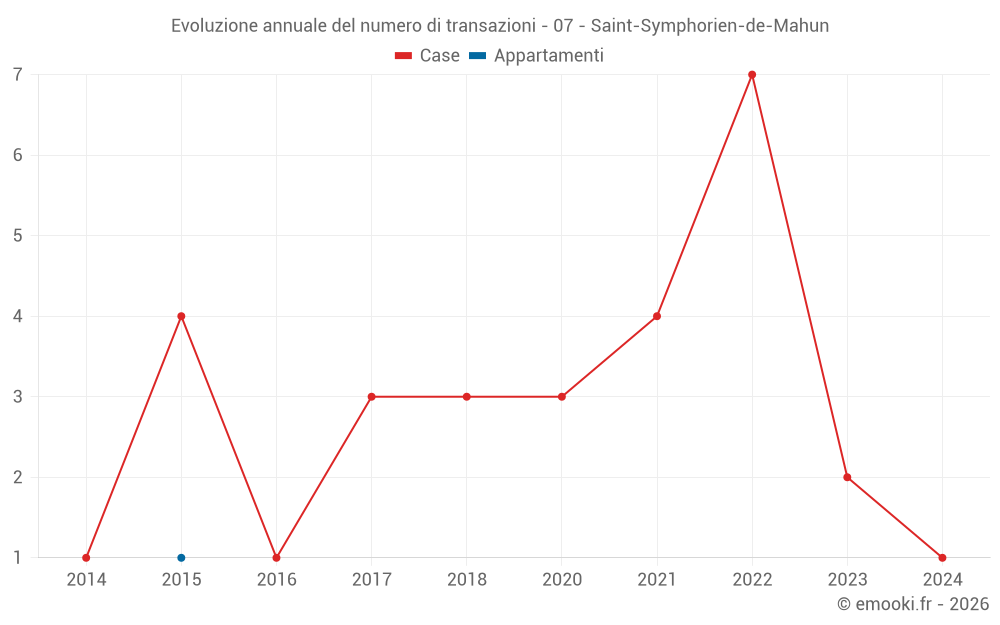 Attenzione, ultimo anno incompleto. Le proiezioni sono effettuate in base alle proporzioni tra semestri dell'anno precedente a livello dipartimentale/nazionale e per tipo di proprietà .