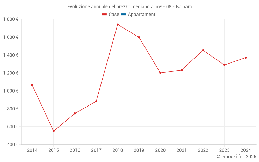 Evoluzione del prezzo mediano al m² degli appartamenti