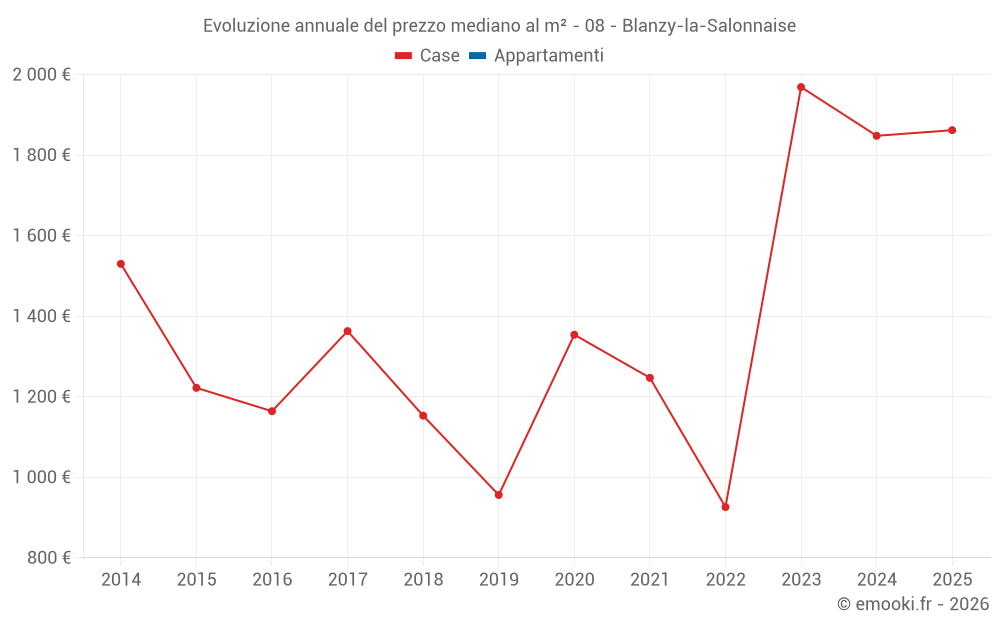 Evoluzione del prezzo mediano al m² degli appartamenti