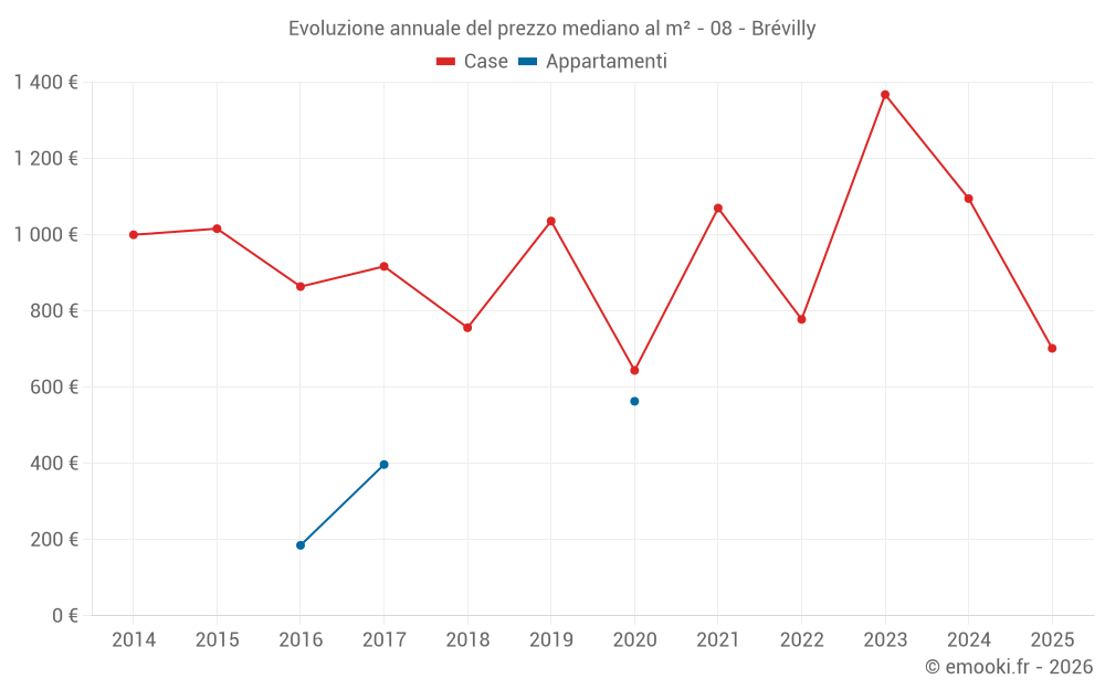 Evoluzione del prezzo mediano al m² degli appartamenti