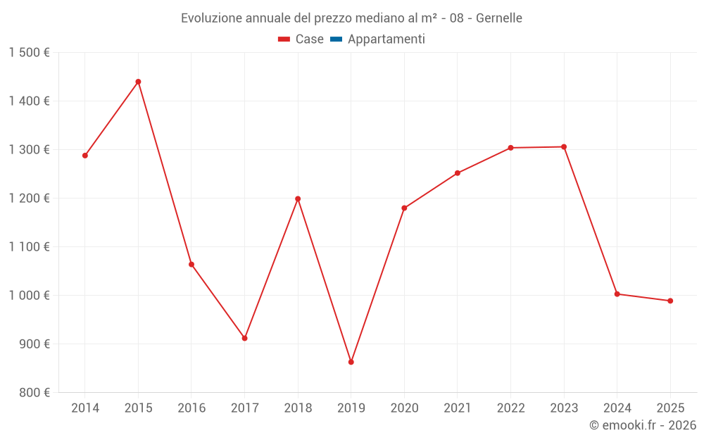 Evoluzione del prezzo mediano al m² degli appartamenti