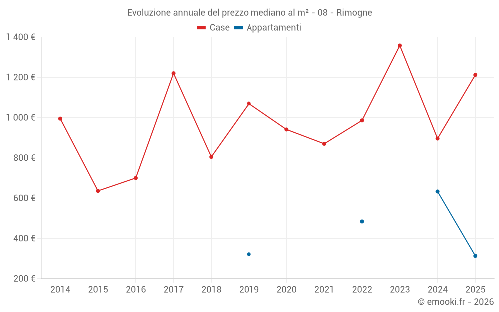 Qual è il prezzo al m2 delle case in Rimogne?