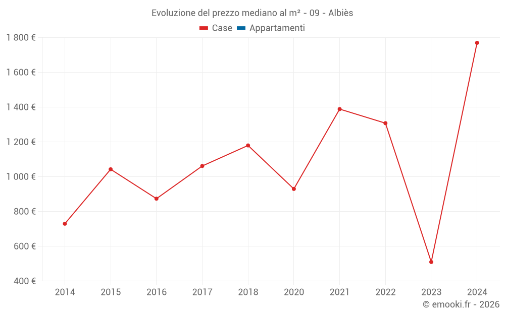 Mappa dei prezzi della casa nel comune di Albiès, scegli una sezione per vedere le transazioni per parcella.