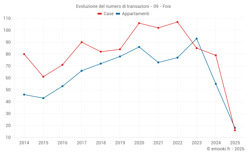 Attenzione, ultimo anno incompleto. Le proiezioni sono effettuate in base alle proporzioni tra semestri dell'anno precedente a livello dipartimentale/nazionale e per tipo di proprietà.
