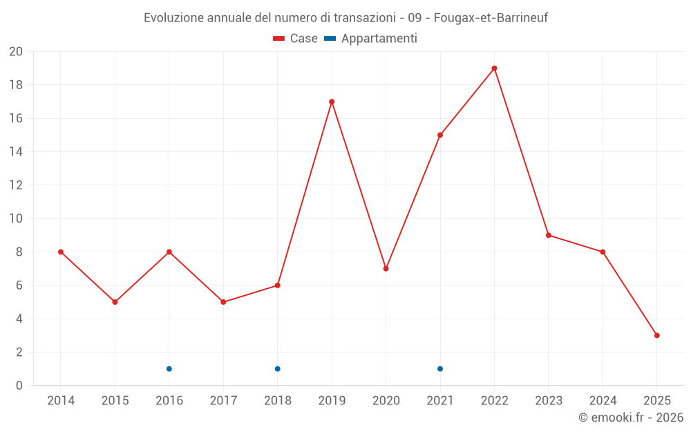 Il prezzo mediano sulle 16 transazioni di case degli ultimi 24 mesi nel comune di Fougax-et-Barrineuf era di 1 282 € al metro quadrato per un valore patrimoniale mediano di 110 500 €. In questo periodo il 60% delle transazioni era tra 818 e 1 837 € al metro quadrato (dal 2° all'8° decile).