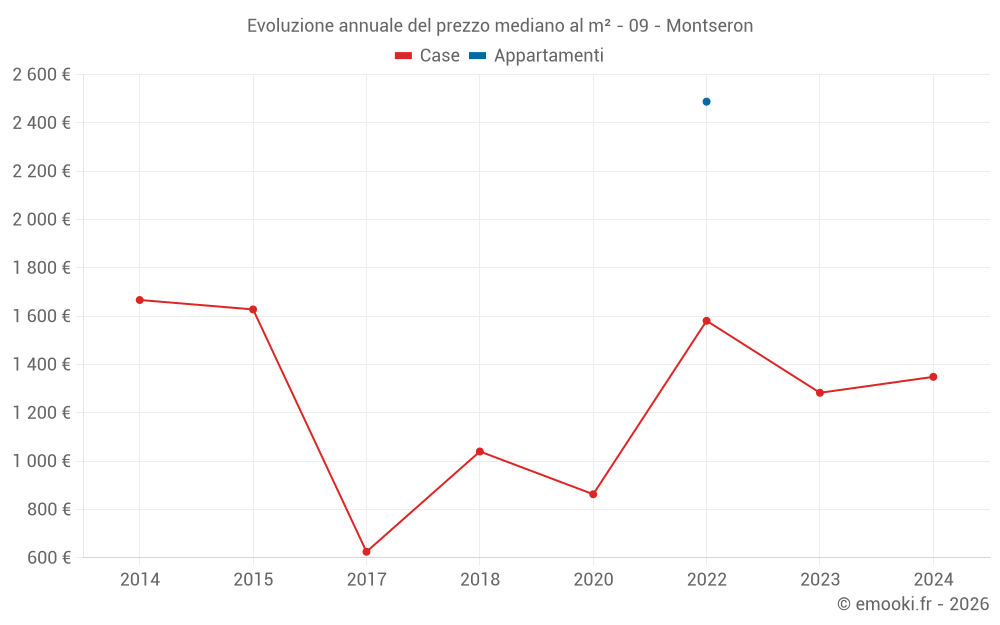 Evoluzione del prezzo mediano al m² degli appartamenti