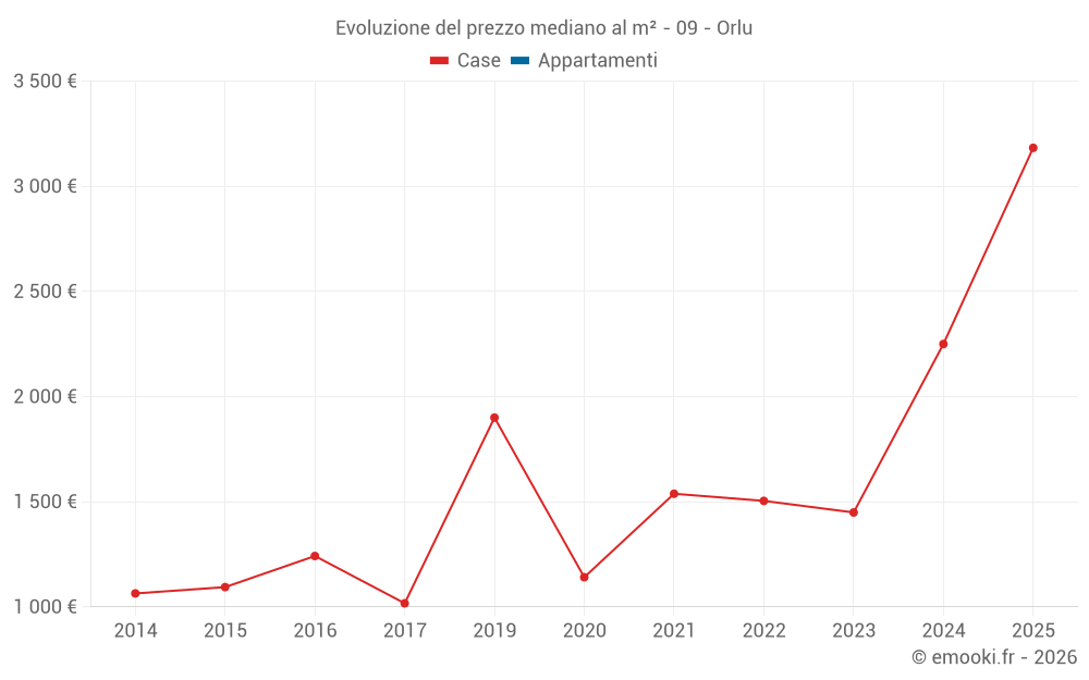Mappa dei prezzi della casa nel comune di Orlu, scegli una sezione per vedere le transazioni per parcella.