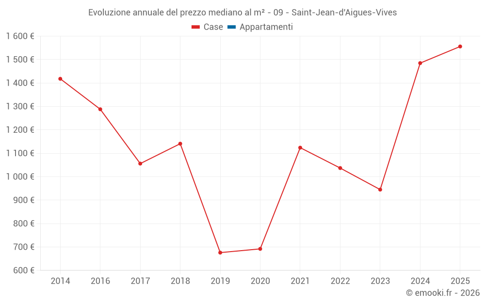 Evoluzione del prezzo mediano al m² degli appartamenti