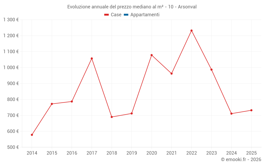 Evoluzione del prezzo mediano al m² degli appartamenti