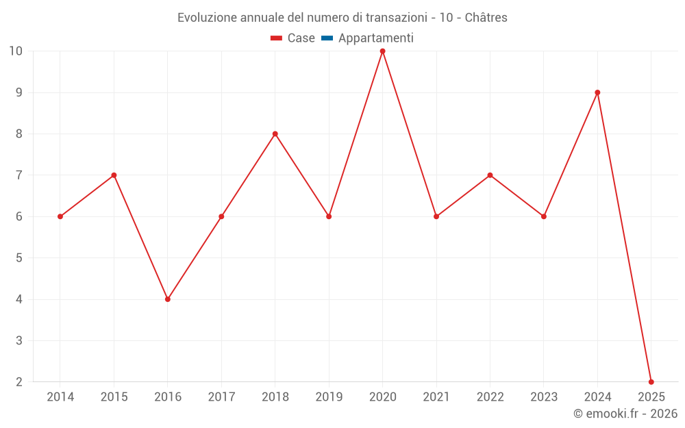 Il prezzo mediano sulle 14 transazioni di case degli ultimi 24 mesi nel comune di Châtres era di 1 306 € al metro quadrato per un valore patrimoniale mediano di 122 500 €. In questo periodo il 60% delle transazioni era tra 965 e 1 694 € al metro quadrato (dal 2° all'8° decile).