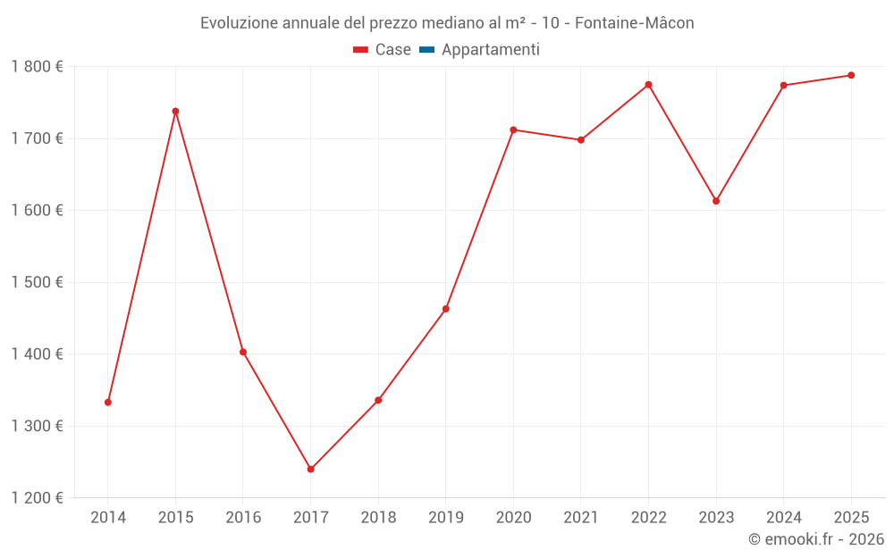 Evoluzione del prezzo mediano al m² degli appartamenti