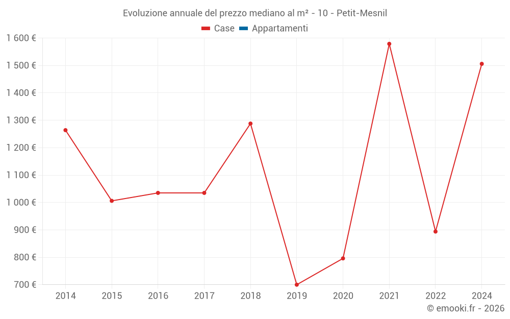 Evoluzione del prezzo mediano al m² degli appartamenti
