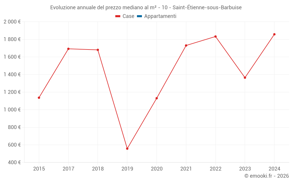 Evoluzione annuale del prezzo mediano al m²