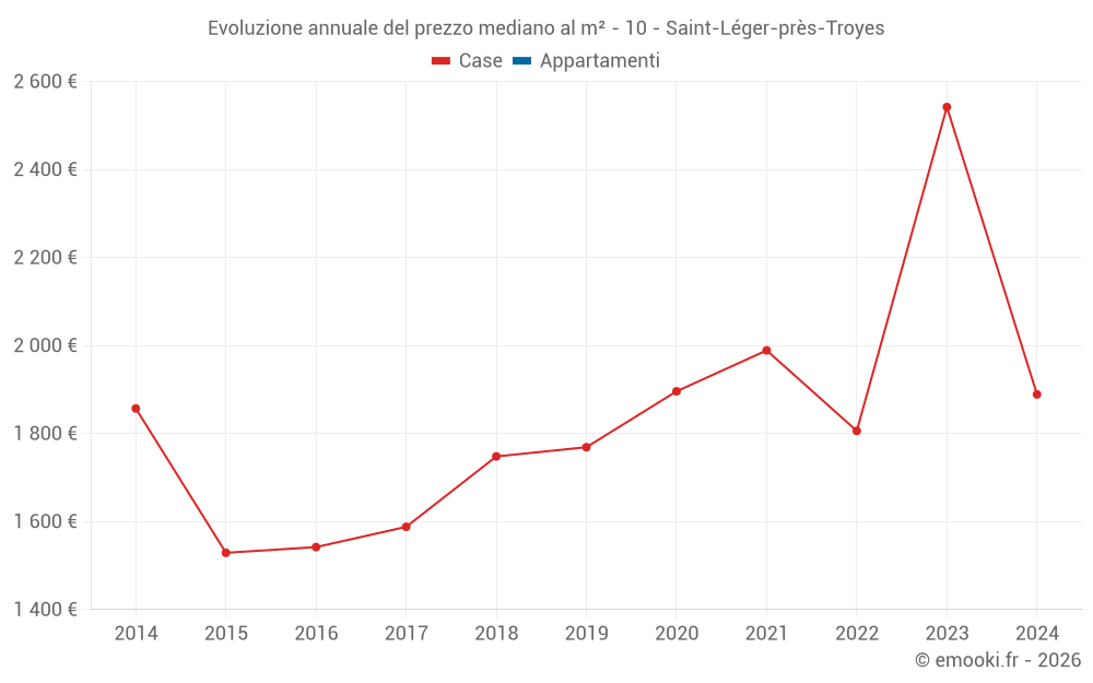 Evoluzione del prezzo mediano al m² degli appartamenti