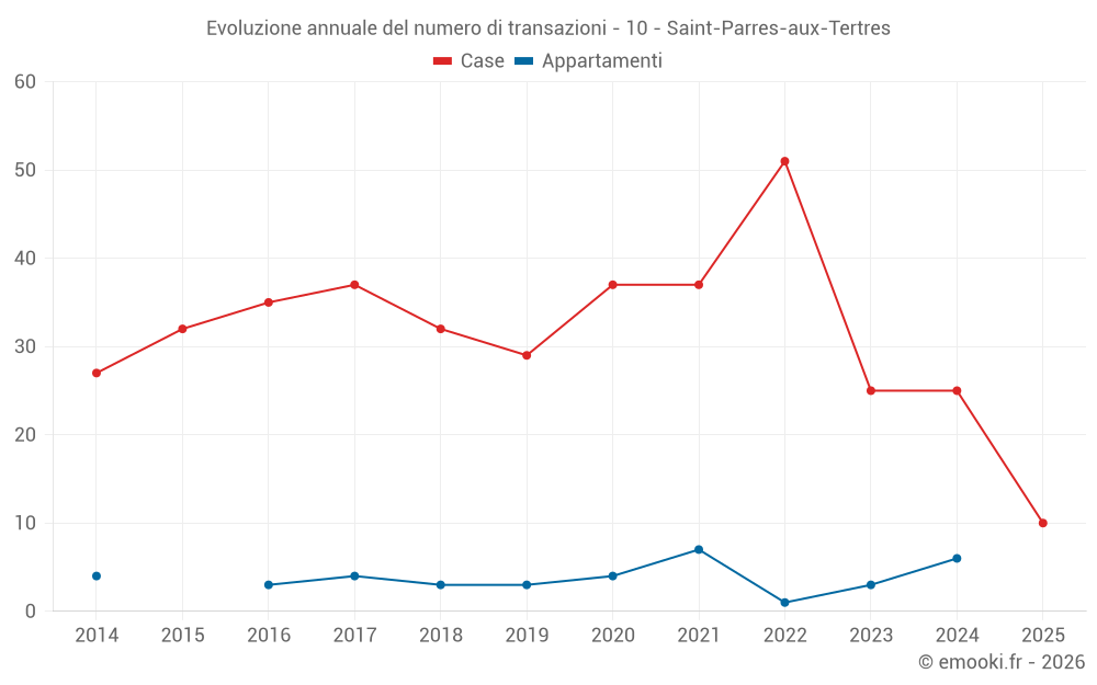 Il prezzo mediano sulle 21 transazioni di case degli ultimi 12 mesi nel comune di Saint-Parres-aux-Tertres era di 2 204 € al metro quadrato per un valore patrimoniale mediano di 167 000 €. In questo periodo il 60% delle transazioni era tra 1 412 e 2 677 € al metro quadrato (dal 2° all'8° decile).