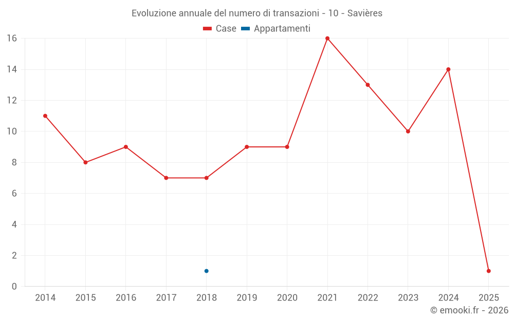Il prezzo mediano sulle 22 transazioni di case degli ultimi 24 mesi nel comune di Savières era di 1 839 € al metro quadrato per un valore patrimoniale mediano di 179 050 €. In questo periodo il 60% delle transazioni era tra 1 361 e 2 285 € al metro quadrato (dal 2° all'8° decile).