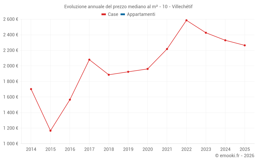 Il prezzo al m² delle case è diminuito del 12% da 3 anni, ma è aumentato del 94% in 10 anni.