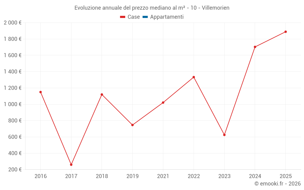 Evoluzione del prezzo mediano al m² degli appartamenti