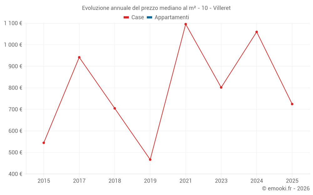 Evoluzione del prezzo mediano al m² degli appartamenti