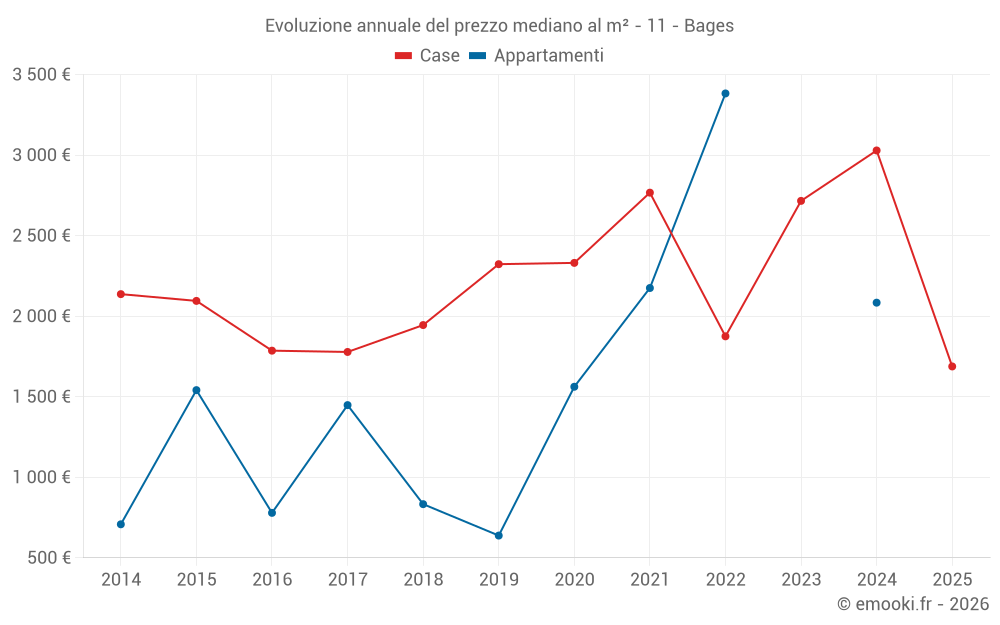 Qual è il prezzo al m2 delle case in Bages?