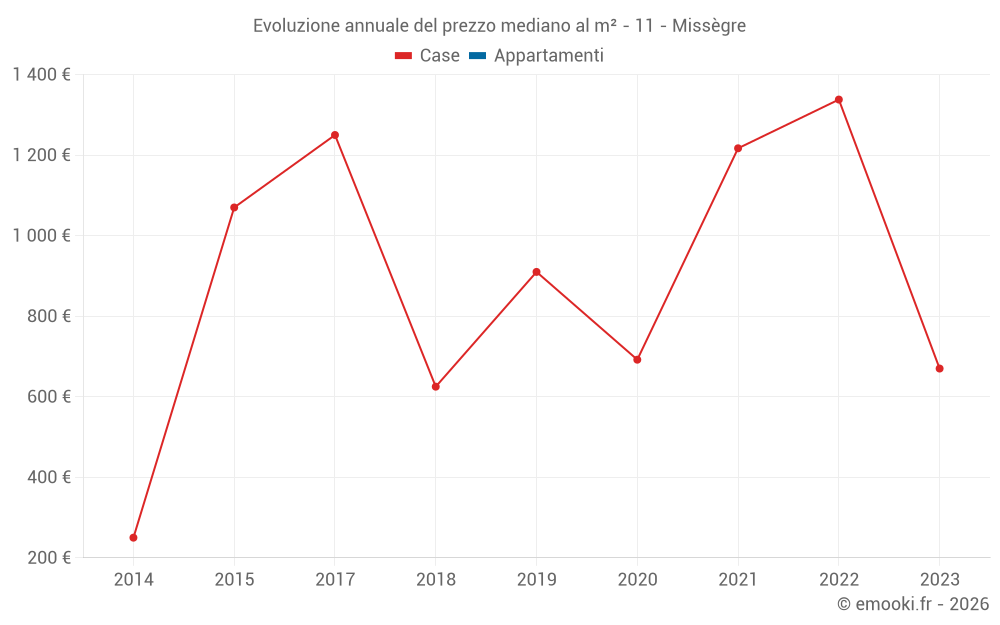Evoluzione del prezzo mediano al m² degli appartamenti