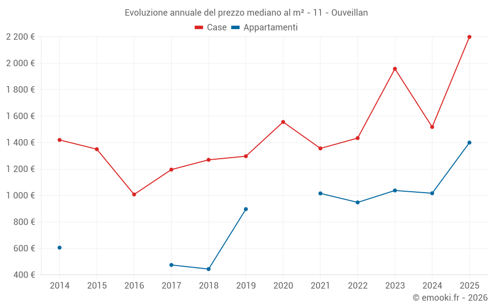 Qual è il prezzo al m2 delle case in Ouveillan?