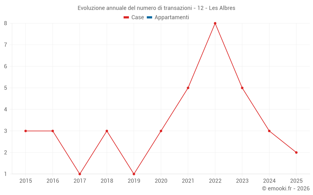 Attenzione, ultimo anno incompleto. Le proiezioni sono effettuate in base alle proporzioni tra semestri dell'anno precedente a livello dipartimentale/nazionale e per tipo di proprietà.