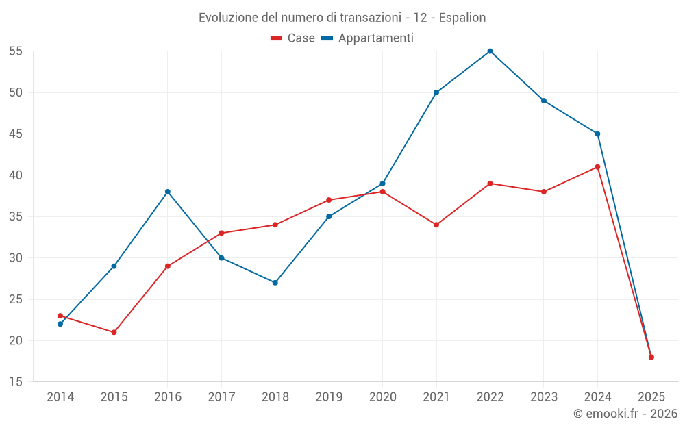 Attenzione, ultimo anno incompleto. Le proiezioni sono effettuate in base alle proporzioni tra semestri dell'anno precedente a livello dipartimentale/nazionale e per tipo di proprietà.
