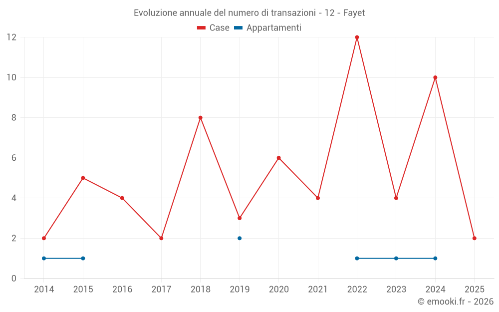 Il prezzo mediano sulle 15 transazioni di case degli ultimi 24 mesi nel comune di Fayet era di 587 € al metro quadrato per un valore patrimoniale mediano di 25 000 €. In questo periodo il 60% delle transazioni era tra 171 e 1 331 € al metro quadrato (dal 2° all'8° decile).