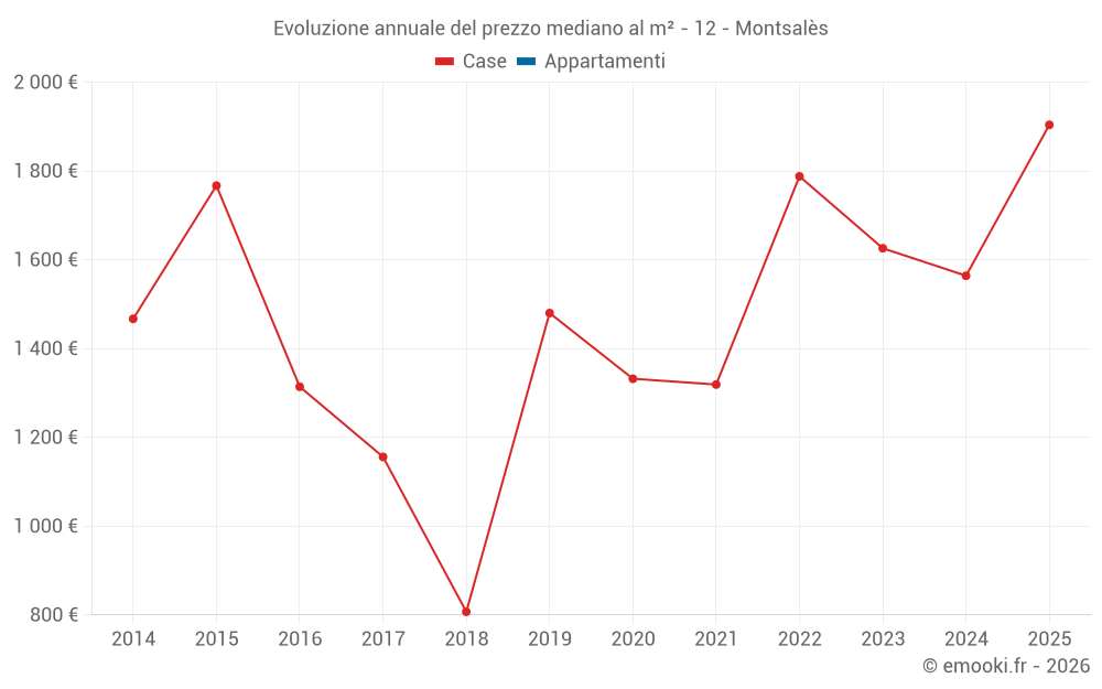 Evoluzione del prezzo mediano al m² degli appartamenti