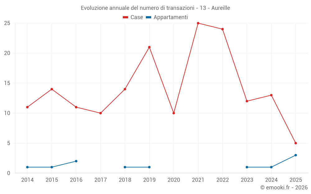 Il prezzo mediano sulle 22 transazioni di case degli ultimi 24 mesi nel comune di Aureille era di 4 372 € al metro quadrato per un valore patrimoniale mediano di 350 562 €. In questo periodo il 60% delle transazioni era tra 3 473 e 5 040 € al metro quadrato (dal 2° all'8° decile).