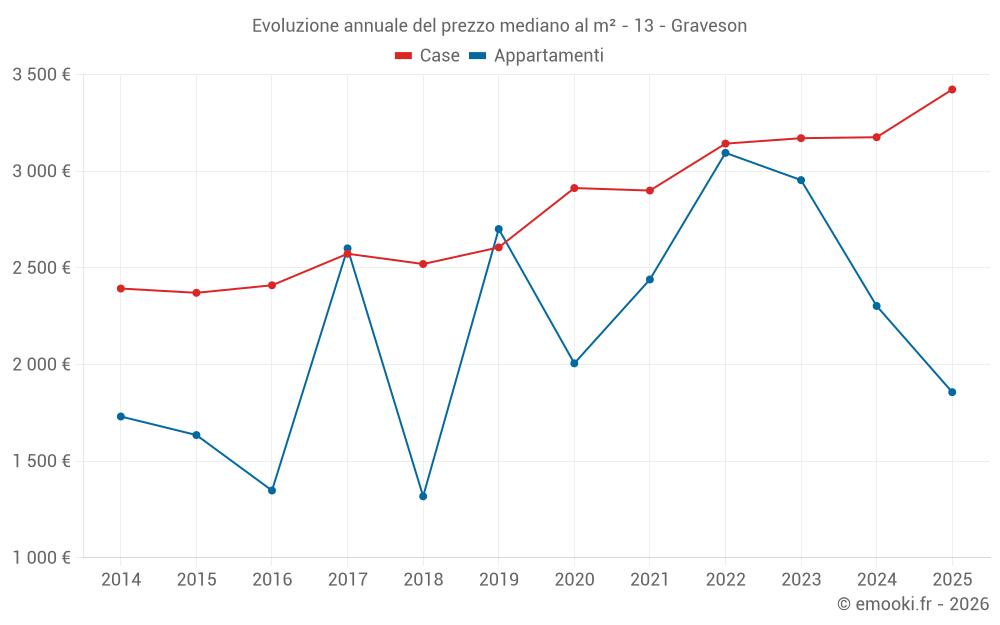 Il prezzo mediano sulle 36 transazioni di case degli ultimi 12 mesi nel comune di Graveson era di 3 412 € al metro quadrato per un valore patrimoniale mediano di 306 750 €. In questo periodo il 60% delle transazioni era tra 2 336 e 3 796 € al metro quadrato (dal 2° all'8° decile).