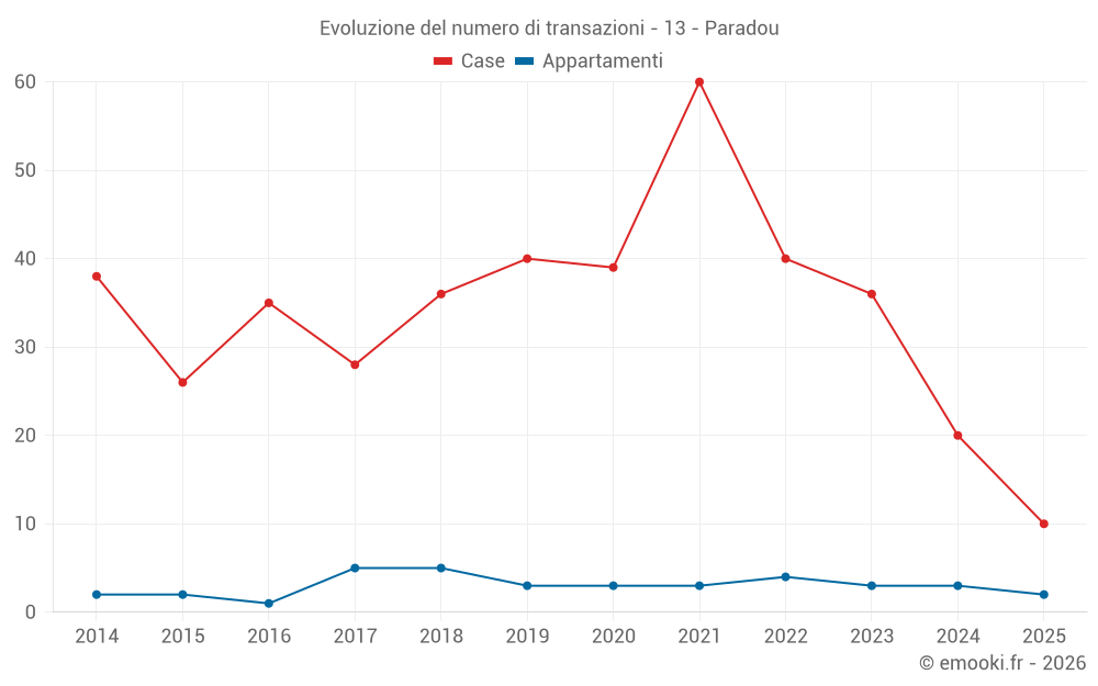 Il prezzo mediano sulle 25 transazioni di case degli ultimi 12 mesi nel comune di Paradou era di 5 298 € al metro quadrato per un valore patrimoniale mediano di 522 800 €. In questo periodo il 60% delle transazioni era tra 4 293 e 6 937 € al metro quadrato (dal 2° all'8° decile).