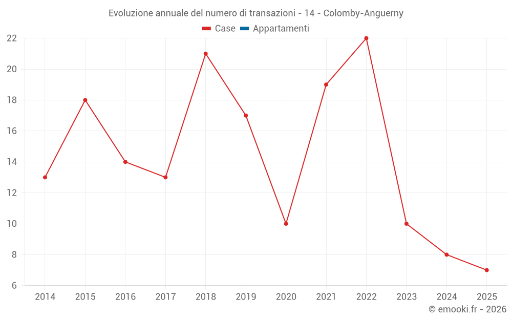 Il prezzo mediano sulle 21 transazioni di case degli ultimi 24 mesi nel comune di Colomby-Anguerny era di 3 103 € al metro quadrato per un valore patrimoniale mediano di 362 423 €. In questo periodo il 60% delle transazioni era tra 2 625 e 3 393 € al metro quadrato (dal 2° all'8° decile).