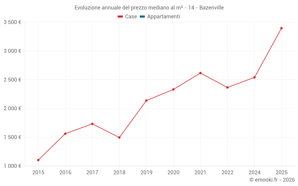 Evoluzione del prezzo mediano al m² delle case